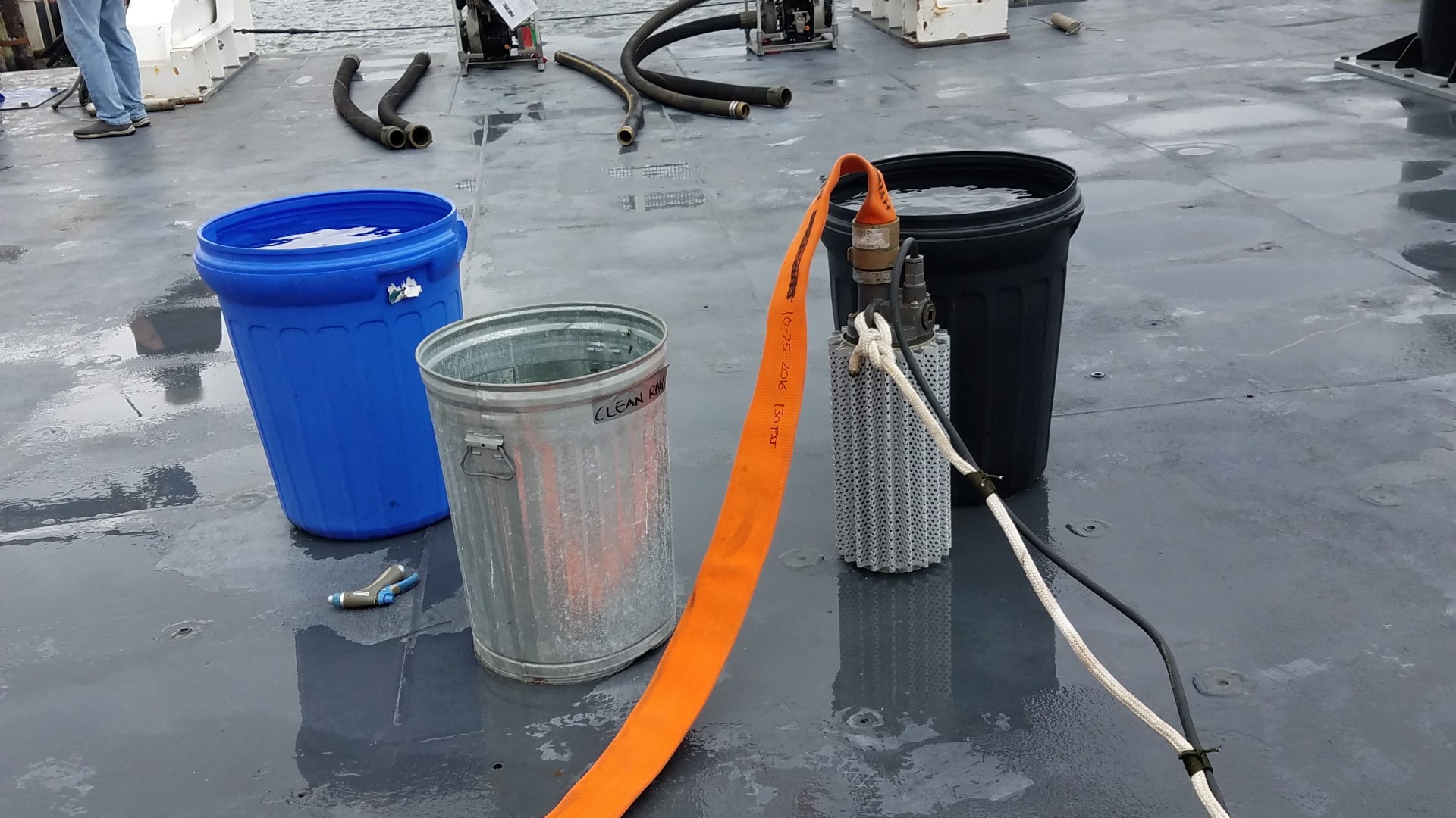 QUICK!! Get the water out!! These pictures and demonstration videos were taken during a Dewatering Damage Control training day. There are three emergency pumps that we can use: the Eductor, P100 Pump, and Semi-Submersable Pump. When to use each pump is completely dependent on the situation at the time.